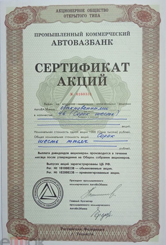 На одну и десять акций именные второго выпуска и одну акцию именная привилегированная третьего выпуска + свидетельство 2-го и 5-го выпусков + сертификат.