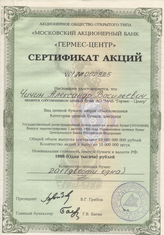 Есть четыре вида сертификатов (+ от руки и напечатанное).