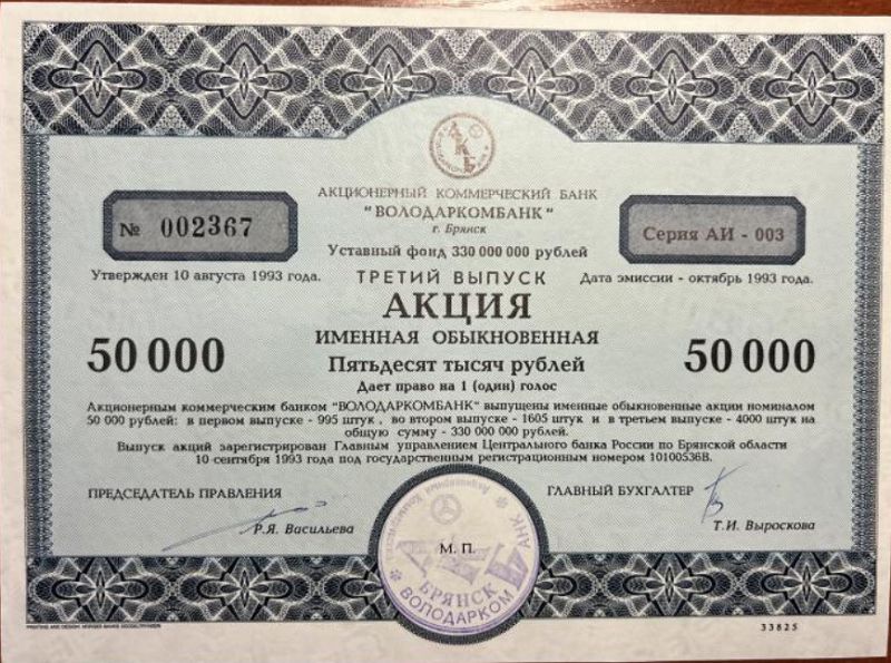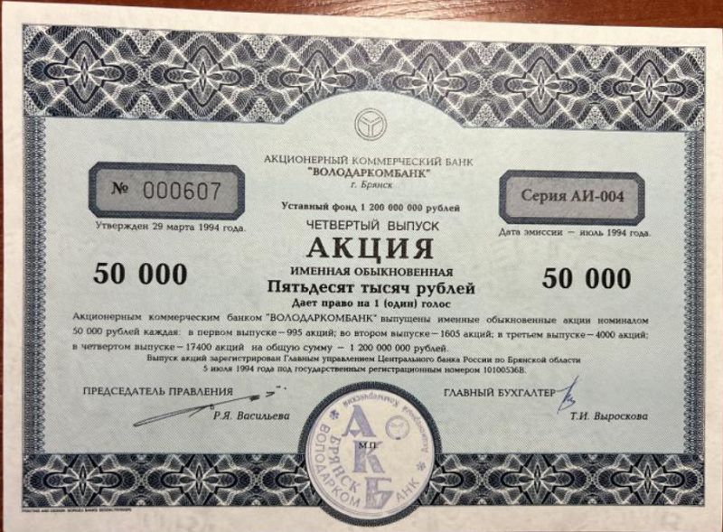 Арбитражный суд Брянской области от 23.07.1997 г. принял решение о признании несостоятельным "Банкротом" АКБ "Володаркомбанк". Определением от 25.08.1997 г. в отношении его открыто конкурсное производство. Окончательно АКБ "Володаркомбанк" прекратил деятельность 31.12.2000 г.